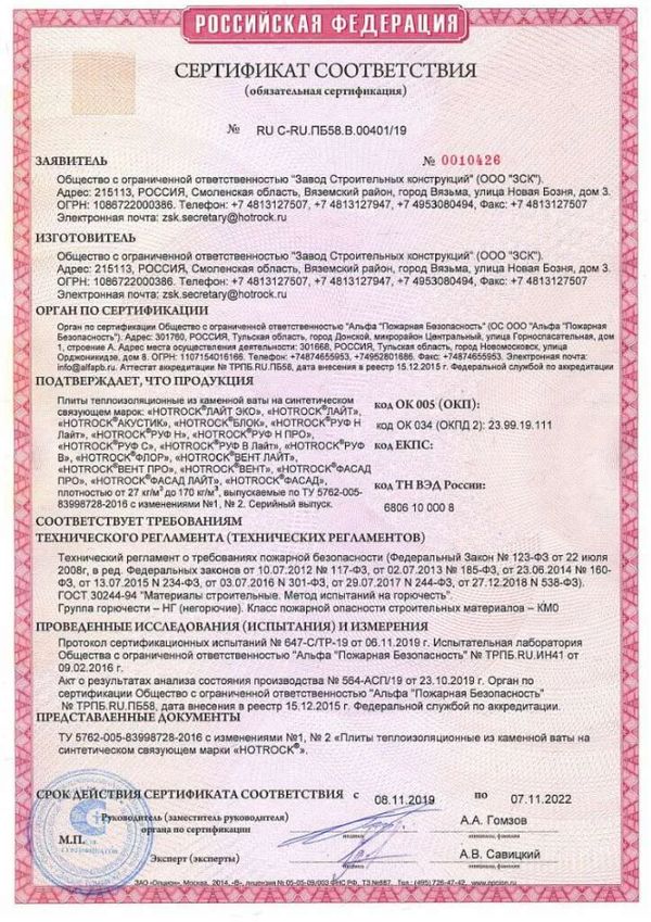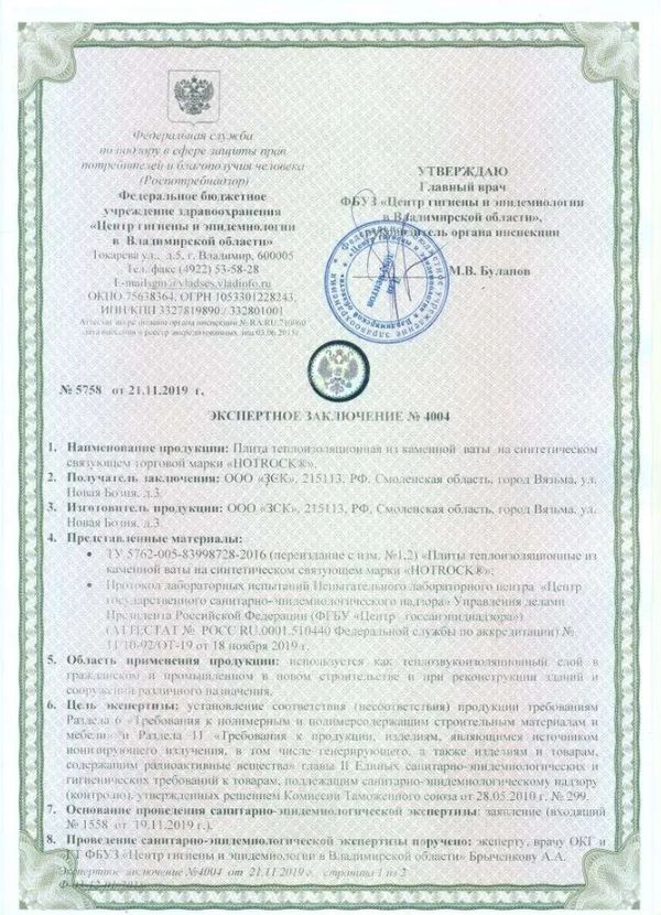 Вся продукция Hotrock производится с соблюдением экологических стандартов. Базальтовая вата Hotrock Руф С 110х600х1200 не содержит вредных веществ и абсолютно безопасна для здоровья человека.