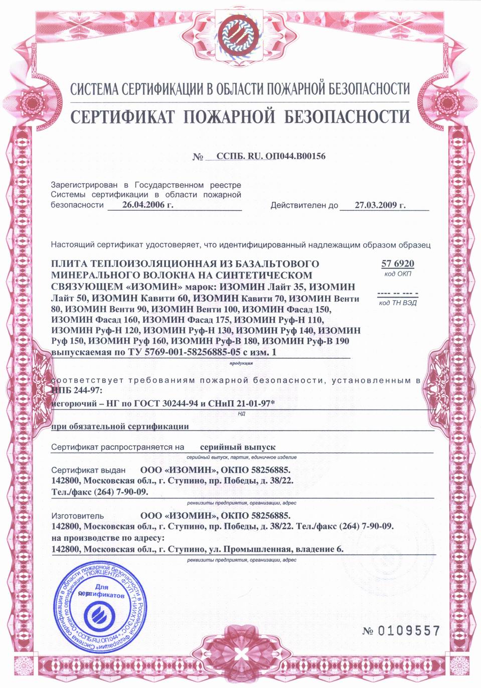 - Группа горючести: НГ (негорючий)